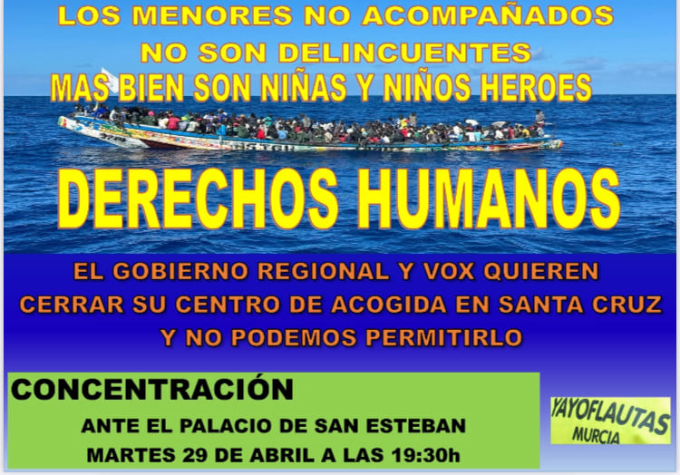 Ante el peligro real de que el centro sea cerrado, los Yay@flautas de Murcia, acompañados por decenas de colectivos sociales, vecinales y defensores de derechos humanos, han convocado una concentración este martes 29 de abril a las 19:30 horas frente al Palacio de San Esteban, sede del Gobierno regional.