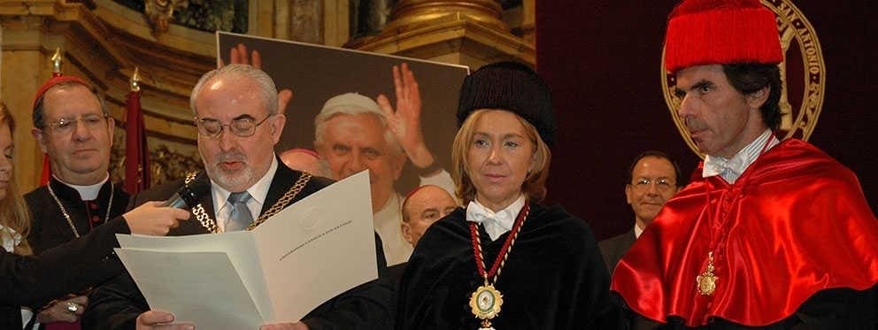 Entre sus doctores honoris causa figura el ex presidente del gobierno, José María Aznar (2010) y el ex ministro del Interior, Jaime Mayor Oreja (2012) entre otros.