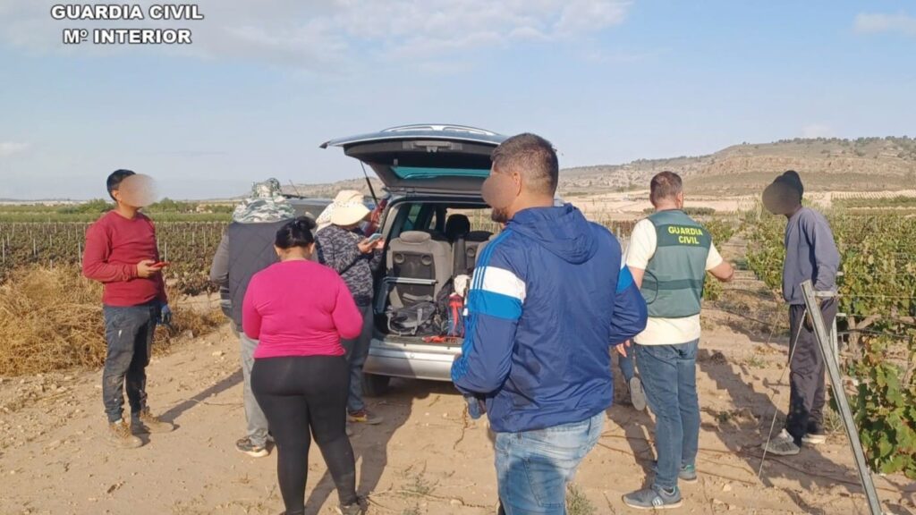 13 diciembre 2024: La Guardia Civil desmantela una finca del Guadalentín (Alhama de Murcia) donde explotaban a 12 ‘sin papeles’. La Guardia Civil detuvo a un empresario agrícola e investigó a dos de sus empleados. Según los agentes, no les hicieron contrato puesto que no tenían regularizada su situación. En el momento de la inspección junto a funcionarios del Ministerio de Trabajo, los jornaleros que se encontraban recolectando no sabían exactamente dónde estaban ni para qué empresa o personas trabajaban.