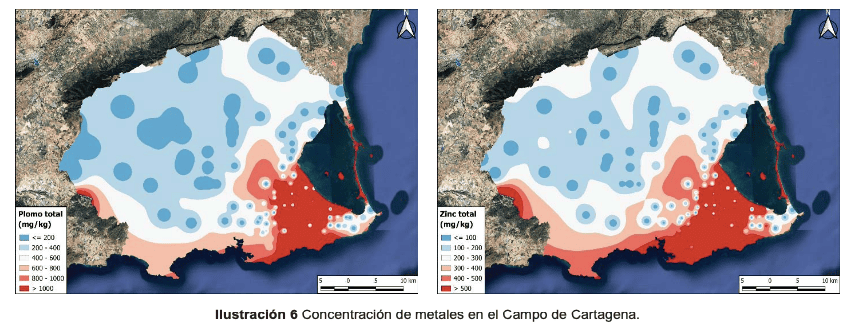 Estos trabajos, apoyados en cartografías detalladas, muestran de forma gráfica la distribución de contaminantes como plomo, cadmio o zinc en distintas zonas del arco sur, evidenciando que no se trata de casos aislados, sino de un problema estructural y territorialmente extendido.